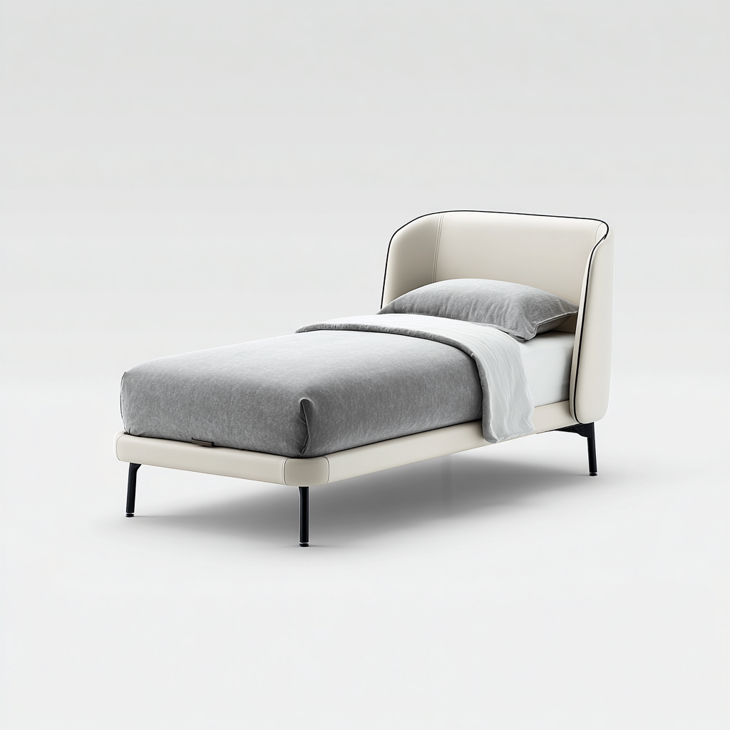 Ce lit simple au design moderne est conçu pour offrir un couchage confortable dans une chambre individuelle. Son format compact et ses lignes épurées facilitent son intégration dans différents styles d'intérieur.