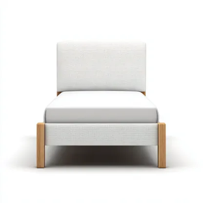 Ce lit simple au design moderne offre une esthétique sobre et chaleureuse, idéale pour une chambre. Son revêtement en tissu beige associé à une structure en bois apparent apporte une touche naturelle et élégante, parfaitement adaptée à un usage quotidien.